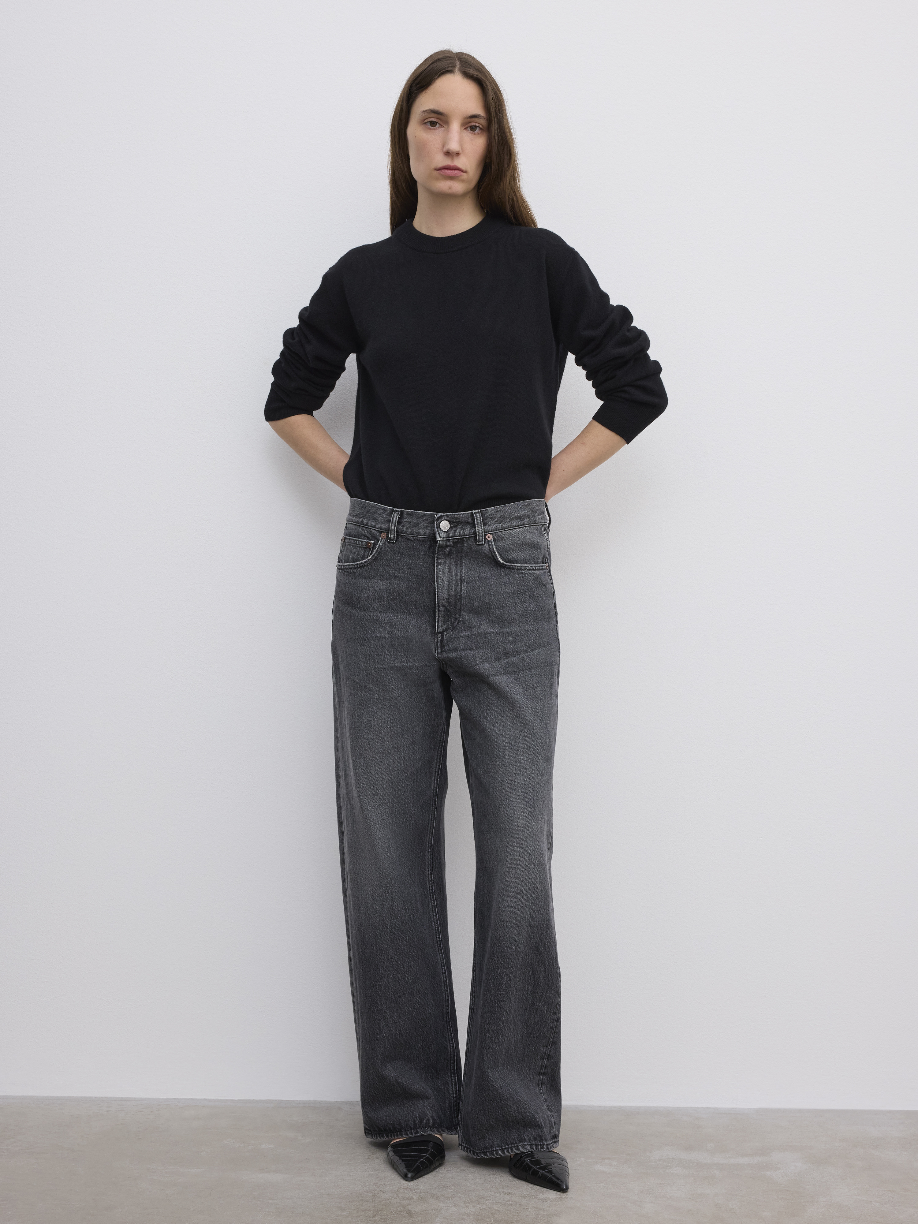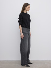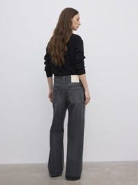 A mid-rise long-length denim in 100% organic cotton, jeans with a baggy fit, wide leg, slightly dropped drotch and classic 5-pocket frame. Made in Italy. - Baggy fit - Mid waist - Wide leg - Slightly dropped crotch - Long Length - Zip fly FIT & SIZING Model is 178 cm/ 5'8" and is wearing a size 27/34 Fits big in size, many choose to size down one size MATERIAL 100% Organic cotton GARMENT CARE Machine wash, 30° delicate GARMENT ORIGIN Produced in Italy