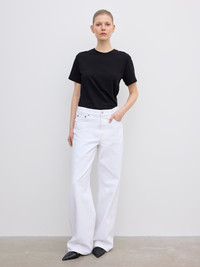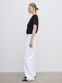 A mid-rise long-length denim in 100% organic cotton with a baggy fit, wide leg, and classic 5-pocket frame. Made in Italy. - Baggy fit - Mid waist - Wide leg - Long Length - Zip fly FIT & SIZING Model is 176 cm/ 5'8" and is wearing a size 27/32 Fits big in size, many choose to size down one size MATERIAL 100% Organic cotton GARMENT CARE Machine wash 30° delicate GARMENT ORIGIN Produced in Italy