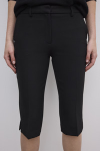 Tailored mid-rise capri trousers in lightweight suiting with narrow leg, pressed creases, front slash pockets, and jet pockets at the back. FIT & SIZING Model is 177 cm / 5'8" and is wearing a size 36, UK 8, US 4. MATERIAL 63% Polyester 27% Viscose 7% Cotton 3% Elastane GARMENT ORIGIN Produced in Portugal