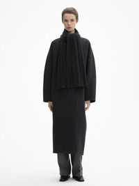 Ribbed scarf from a soft cashmere and wool blend with a bespoke cable knit pattern by Dagmar’s in-house knitting atelier. FIT & SIZING One size. MATERIAL 70% Wool, 30% Cashmere. GARMENT CARE Manually handwash cold, dry flat. GARMENT ORIGIN Produced in China