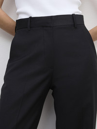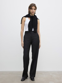 Mid-rise tailored trousers made from lightweight wool suiting with a straight leg, pressed creases, front slash pockets, and rear welt pockets. - Mid waist - Pressed front and back creases - Relaxed, straight leg - Belt loops - Side and front pockets - Zipper fly FIT & SIZING Model is 175cm/ 5'7" and is wearing a size 36, UK 8, US 4. MATERIAL 54% Recycled polyester, 44% Virgin wool 2% Elastane GARMENT CARE Dry clean GARMENT ORIGIN Produced in Portugal