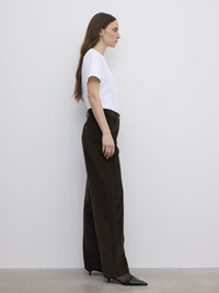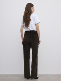 Mid-rise full-length trousers made from Italian cotton corduroy with a relaxed straight leg, classic denim front pockets, and a back welt pocket. - Mid waist - Belt loops - Side and back pocket - Zipper fly - Relaxed straight leg FIT & SIZING Model is 177 cm / 5'8" and is wearing a size 36, UK 8, US 4. MATERIAL 100% Organic cotton GARMENT CARE Machine wash 30 GARMENT ORIGIN Produced in Portugal