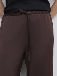 Eased drawstring trousers made from a fluid viscose with slanted pockets and an elasticated waist. FIT & SIZING Model is 175cm/ 5'7" and is wearing a size 36, UK 8, US 4. MATERIAL 100% Viscose GARMENT CARE Handwash cold GARMENT ORIGIN Produced in Portugal