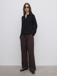 Polo sweater from a soft cashmere and wool blend with a relaxed frame and a dynamic cable knit pattern by Dagmar’s in-house knitting atelier. FIT & SIZING Model is 177 cm / 5'8" and is wearing a size 36, UK 10, US 6. MATERIAL 70% Wool, 30% Cashmere GARMENT CARE Handwash cold GARMENT ORIGIN Produced in China