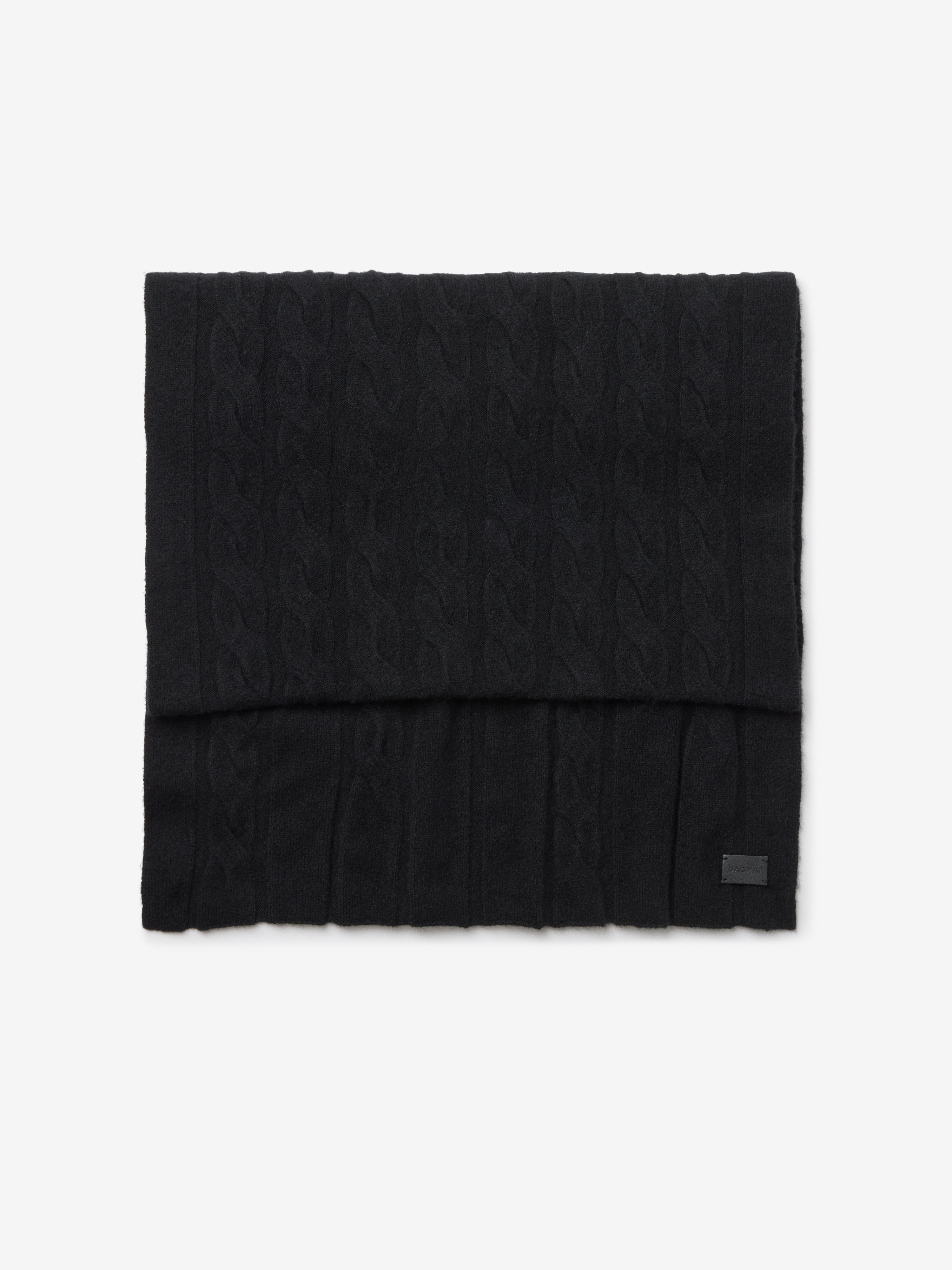Ribbed scarf from a soft cashmere and wool blend with a bespoke cable knit pattern by Dagmar’s in-house knitting atelier. MATERIAL 70% Wool 30% Cashmere GARMENT CARE Handwash cold GARMENT ORIGIN Produced in China
