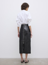 A mid-length pencil skirt in soft yet structured lambskin nappa leather with curved side seams and a two-way metal zip at the back. Fully lined. MATERIAL 100% Lamb leather GARMENT CARE Dry clean by specialist GARMENT ORIGIN Produced in Turkey