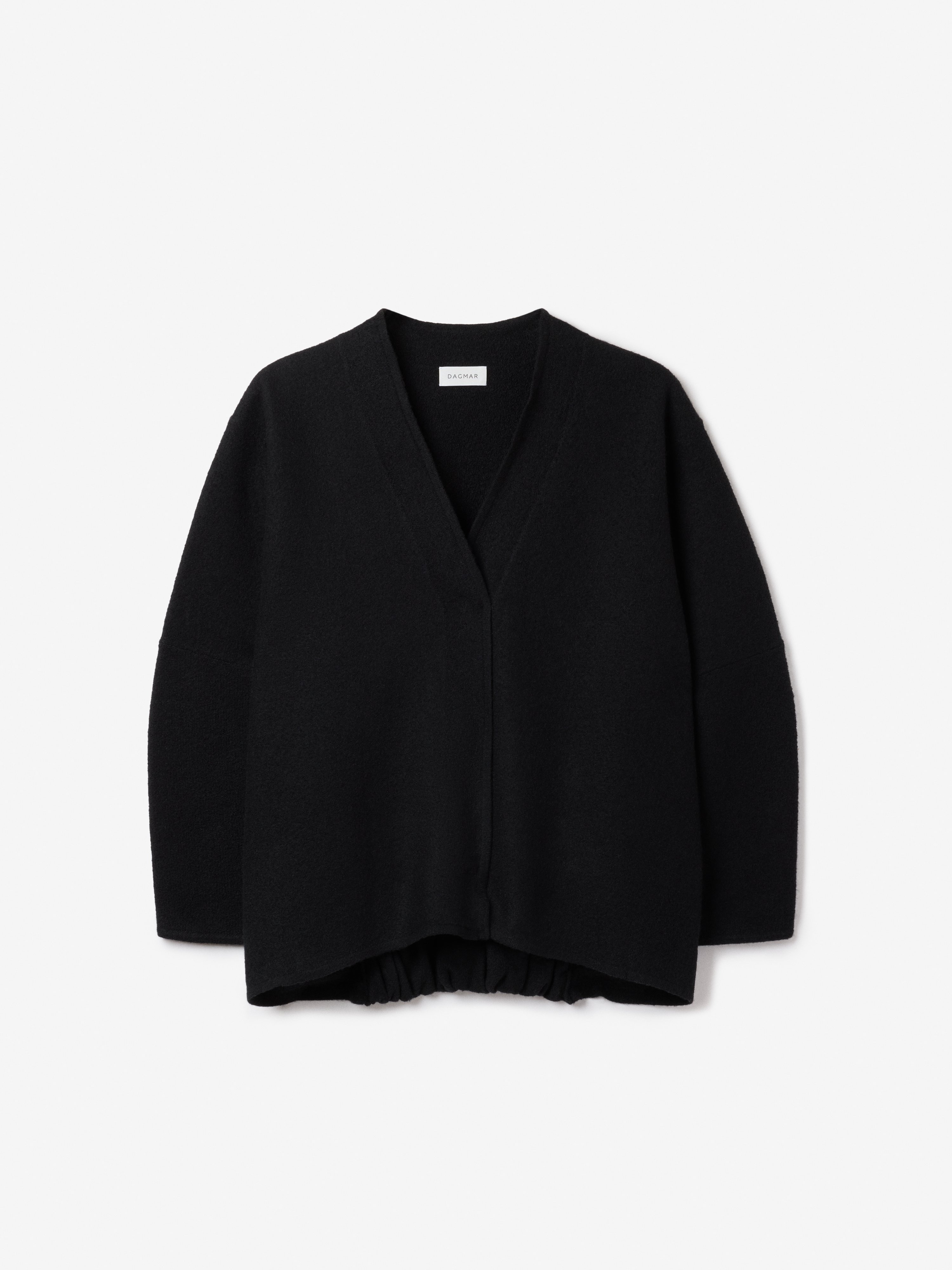 Expected arrival mid August V-neck cardigan in a rich and rigid 100% mulesing-free merino wool. Designed with a slightly oversized silhouette and dropped shoulders. FIT & SIZING Model is 175cm/ 5'7" and is wearing a size 36, UK 8, US 4. MATERIAL 100% Merino wool GARMENT CARE Handwash cold GARMENT ORIGIN Produced in Hong Kong SAR China