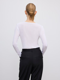 Long-sleeve top in ribbed lightweight jersey with a slim-fitting silhouette, rounded neckline and elongated sleeves. FIT & SIZING Model is 176 cm/ 5'7" and is wearing a size S, UK 8, US 4. MATERIAL 100% Lyocell GARMENT ORIGIN Produced in Portugal