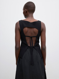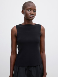 Sleeveless top in a softly structured fine-knit rayon blend with a boat neck and slim-fitting frame. Characterised by cut-out detailing and ties at the back. FIT & SIZING Model is 178cm/ 5'8" and is wearing a size 36, UK 8, US 4. MATERIAL 63% Rayon, 37% Nylon GARMENT CARE Manually handwash cold, dry flat GARMENT ORIGIN Produced in Hong Kong SAR China
