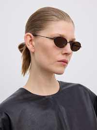 Perfectly pairing a sleek shape with an iconic retro look, the Oval Sunglasses feature tinted bio-nylon lenses and a lightweight feel. Consciously crafted from biodegradable acetate and Swedish stainless steel, they are made distinct by a streamlined, oval, and single-bridged frame. Fitted with a Dagmar logo at the temples. 100% UV protection. Lens (50mm) Bridge (24mm) Temple (145mm) FIT & SIZING 50 x 24 x 145 mm MATERIAL 100% Acetate. GARMENT ORIGIN Produced in Italy