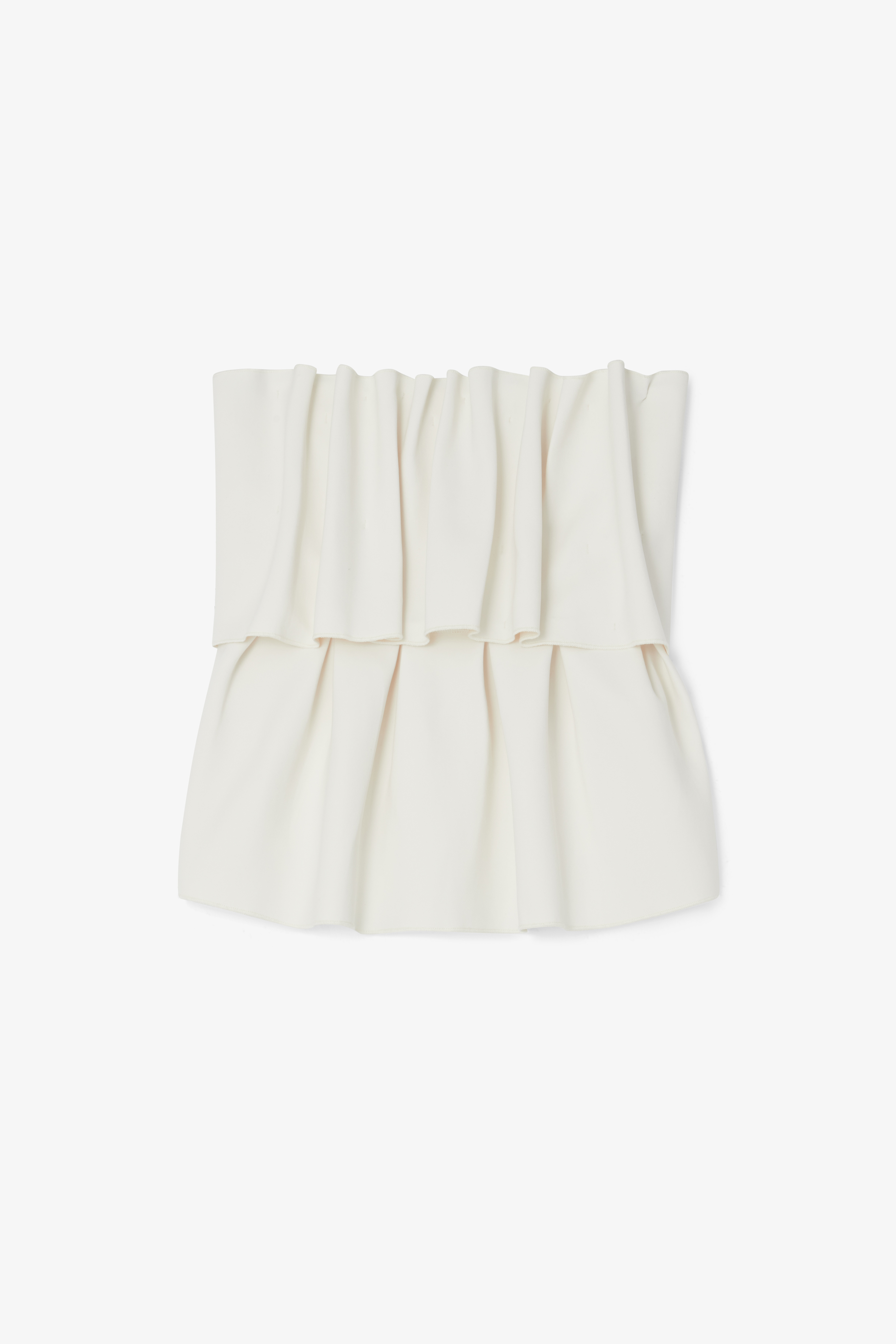 Sleeveless top in a sculptural polyamide blend, accentuated by artful draping and a layered look. FIT & SIZING Model is 175cm / 5'7" and is wearing a size 36. Strapless bustier Draped details Close/tight fit Many choose to size up in this item. MATERIAL 63% Polyamide, 22% Recycled Polyamide, 15%Elastane. GARMENT CARE Hand wash cold. Dry flat. GARMENT ORIGIN Produced in Portugal