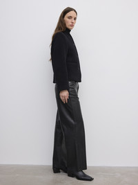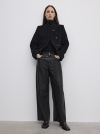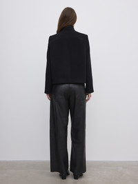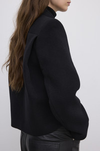 Tailored stand-collar jacket made from Italian wool with a curved front closure, flap pockets, and knife pleats at the back for a rounded look. Fully lined. FIT & SIZING Model is 177 cm / 5'8" and is wearing a size 36, UK 8, US 4. MATERIAL 65% Recycled wool, 35% Recycled polyamide. GARMENT CARE Dry clean GARMENT ORIGIN Produced in Portugal