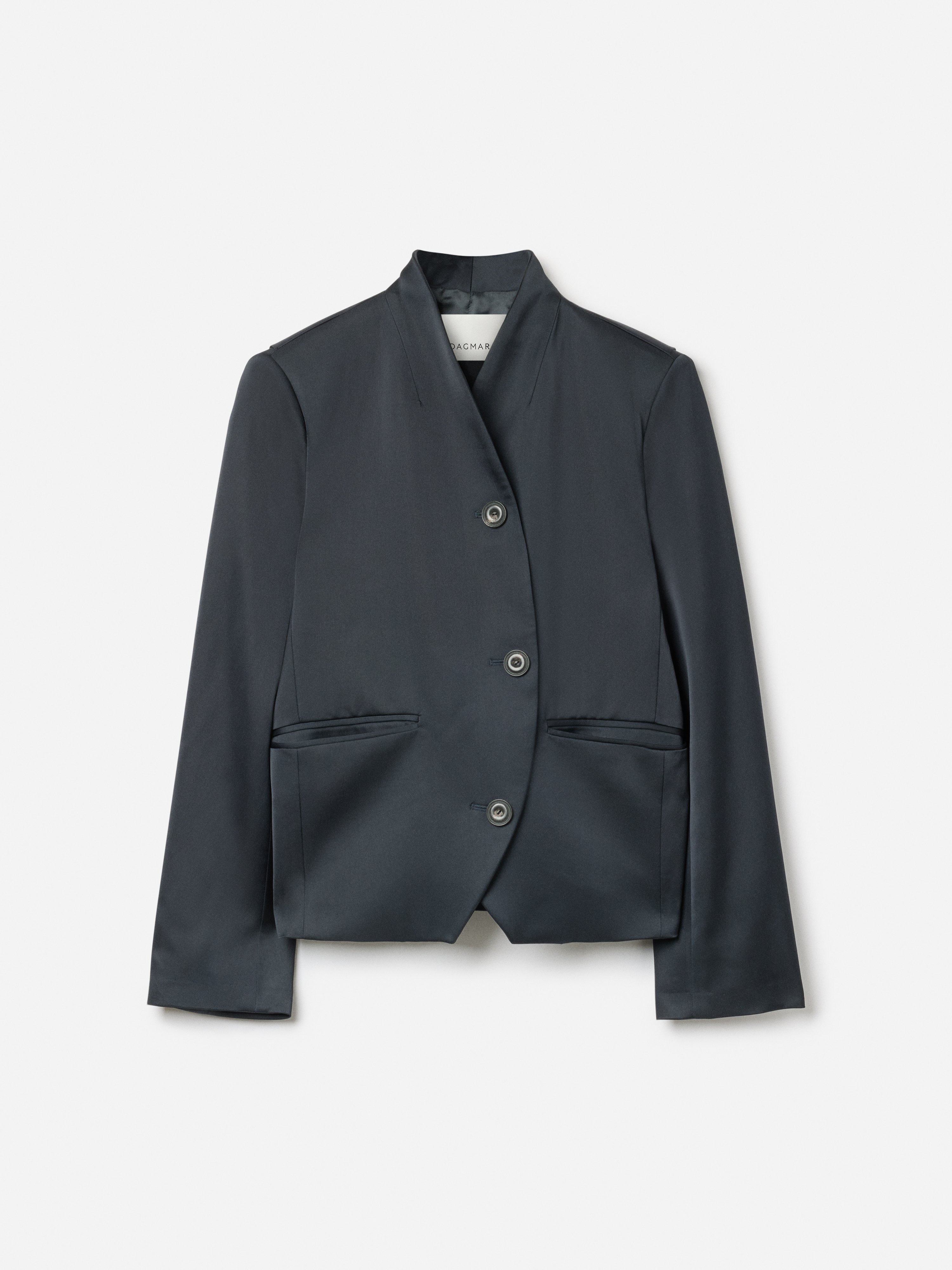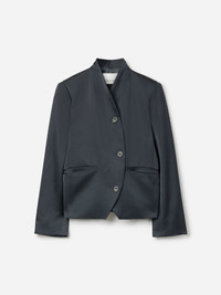 Tailored stand-collar Duchesse jacket with a curved front closure, flap pockets, and knife pleats at the back for a rounded look. MATERIAL 100% Viscose GARMENT CARE Dry clean only GARMENT ORIGIN Produced in Portugal