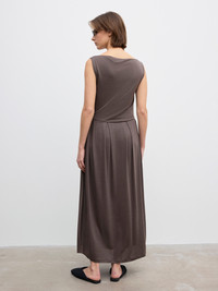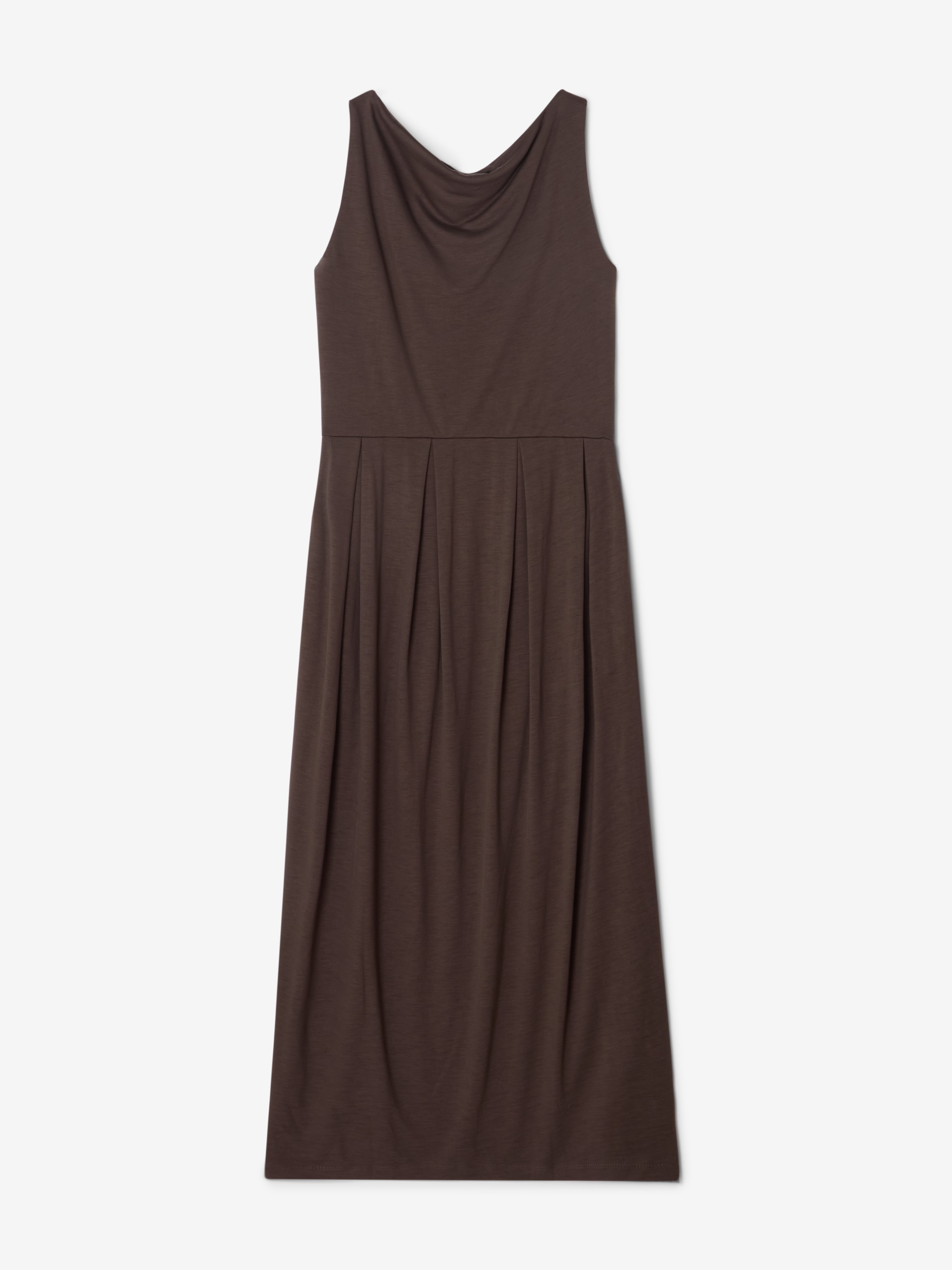 Sleeveless ankle-length dress with a soft hand feel, framed by a close-fitting top, a gently draped, high, and wide feminine neckline, and a pleated skirt. Features in-seam pockets. FIT & SIZING Model is 176 cm / 5'7" and is wearing a size 36, UK 8, US 4. MATERIAL 100% Tencel GARMENT CARE Machine wash, 30° delicate GARMENT ORIGIN Produced in Portugal