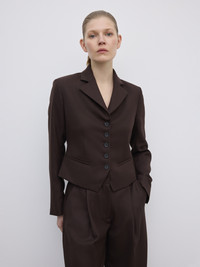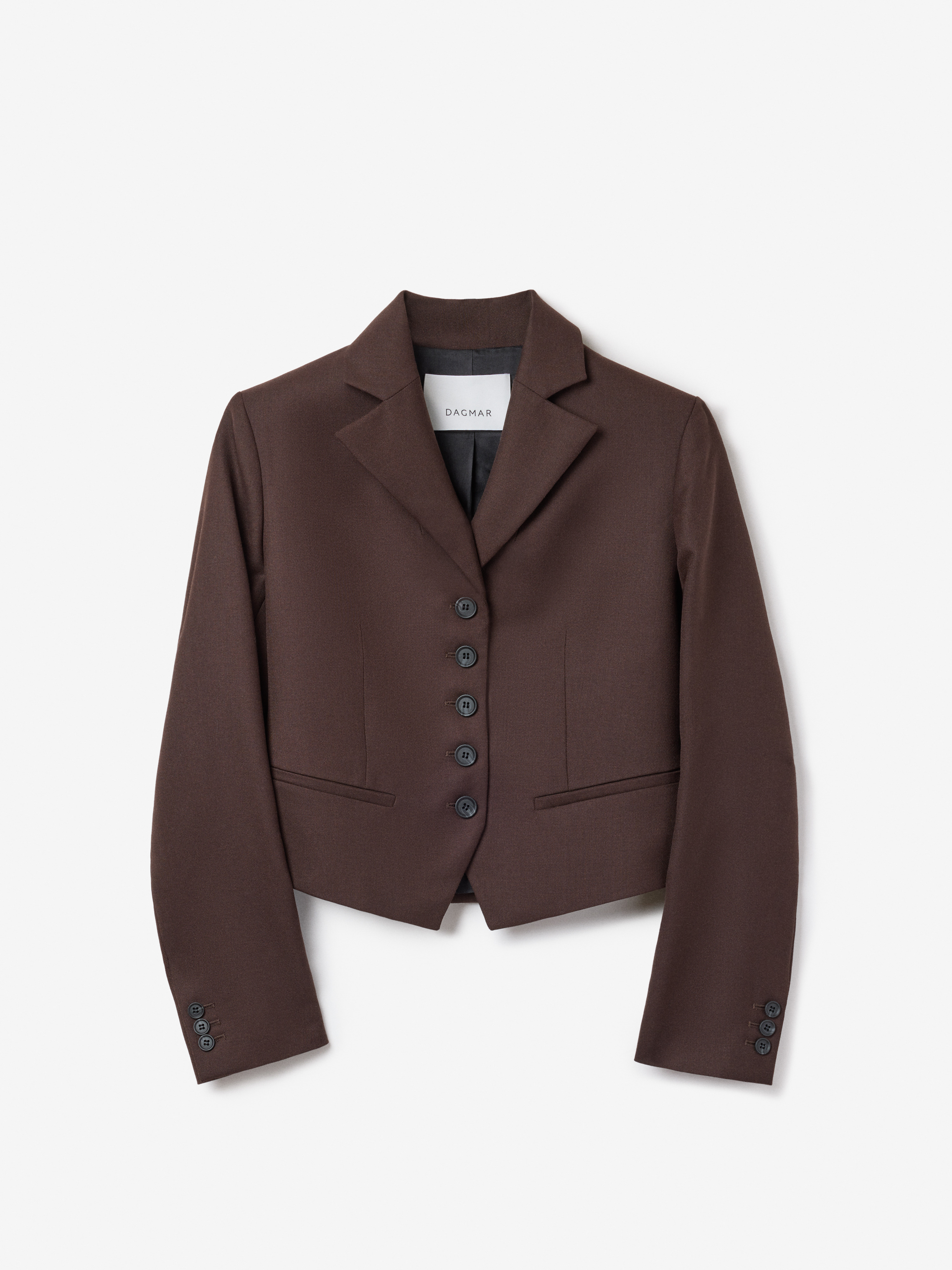 Single-breasted short blazer in lightweight wool suiting, with notch lapels and front besom pockets. Designed for a close fit. Fully lined. FIT & SIZING Model is 177 cm / 5'8" and is wearing a size 36, UK 8, US 4. MATERIAL 55% Polyester 45% Wool GARMENT CARE Dry clean GARMENT ORIGIN Produced in Portugal