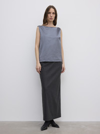 Sleeveless silhouette with a close-fitting frame made from a lustrous cotton blend. Sharpened by a high and wide feminine neckline. Keyhole closure at the back. FIT & SIZING Model is 177 cm / 5'7" and is wearing a size 36, UK 8, US 4. MATERIAL 59% Cotton 37% Polyester, 4% Elastane GARMENT CARE Machine wash 40 GARMENT ORIGIN Produced in Portugal