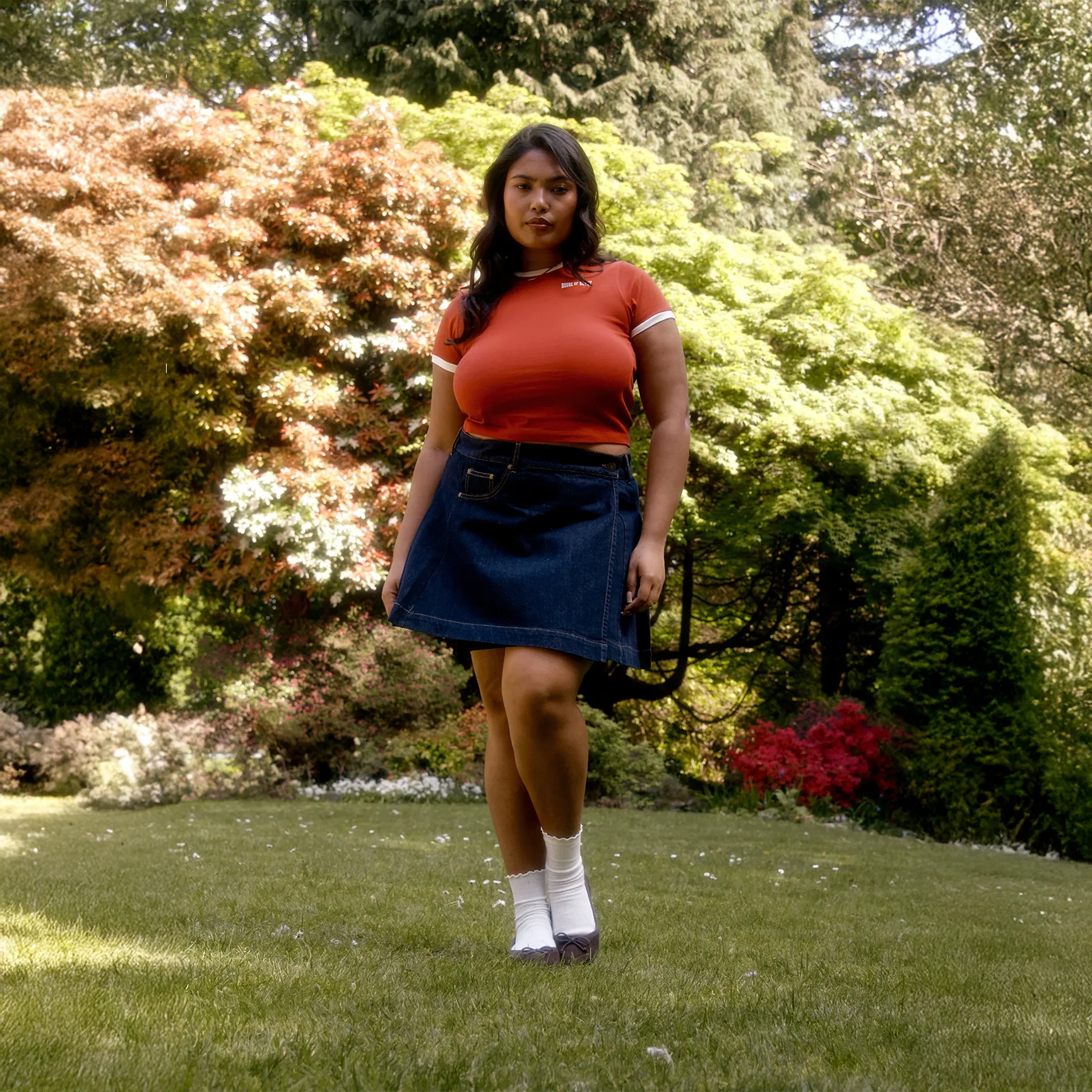 Designed for a standard fit, we recommend selecting your normal size Kaffya is 5'7, is a size UK 14 and wears a UK 12 for extra support Crafted from Organic Cotton Screen printed 'Hackney' logo Baby tee fit Ribbed crewneck For everyday wear COLOUR CHERRY RED