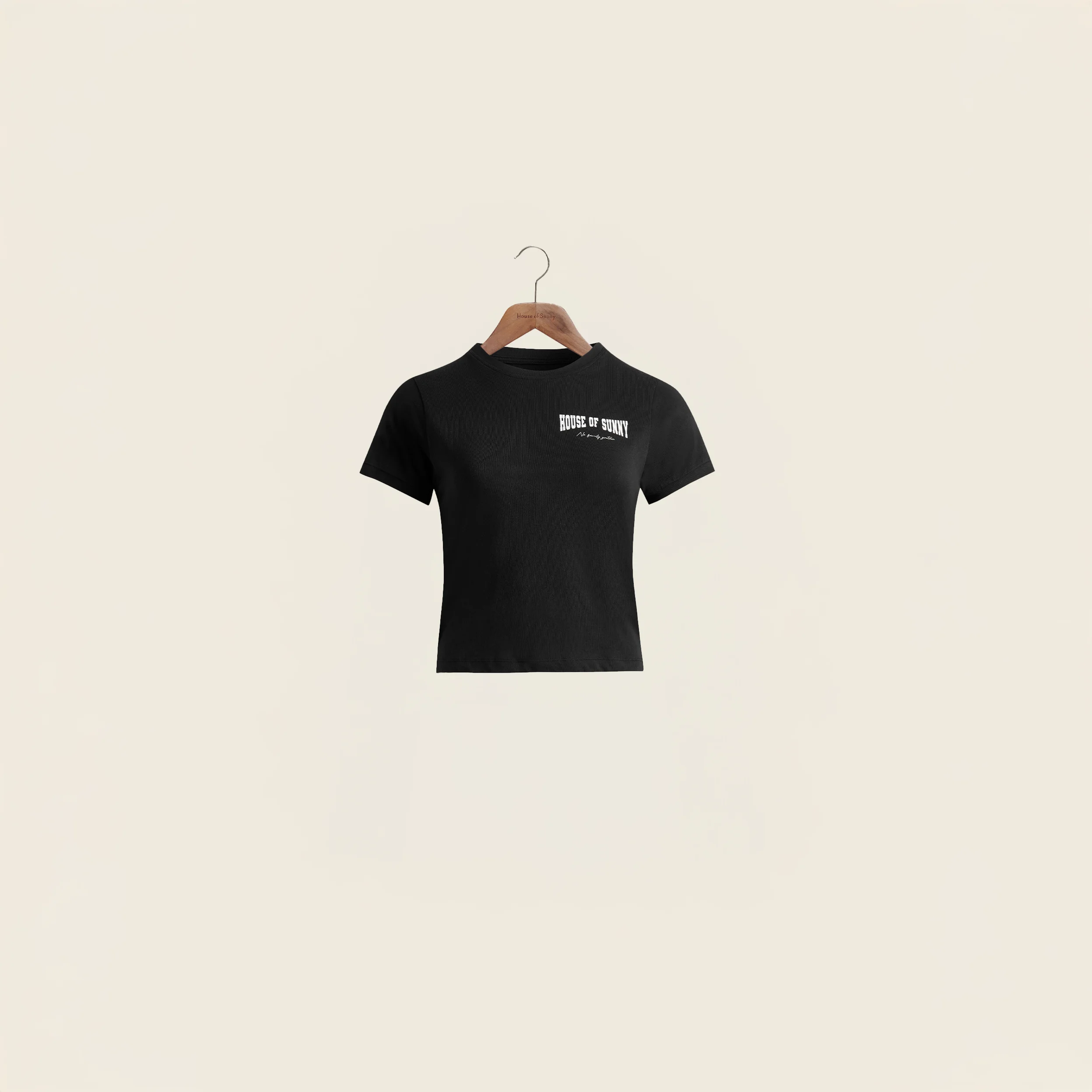 Designed for a standard fit, we recommend selecting your normal size Robyn is 5'9 and wears a size Small Screen printed HoS logo Baby tee fit Ribbed crewneck For everyday wear Crafted from organic cotton FABRIC COMP 100% ORGANIC COTTON COLOUR JET BLACK