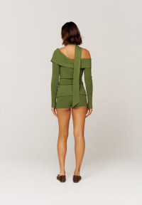 Designed for a standard fit, we recommend selecting your normal size Robyn is 5'9 and wears a size UK 8 Versatile silhouette Ribbed knit technique Folded over waistband Form fitting silhouette Pair it with the matching 'One Love Shoulder Rib' FABRIC COMP 65% VISCOSE, 35% POLYESTER COLOUR PINE GREEN