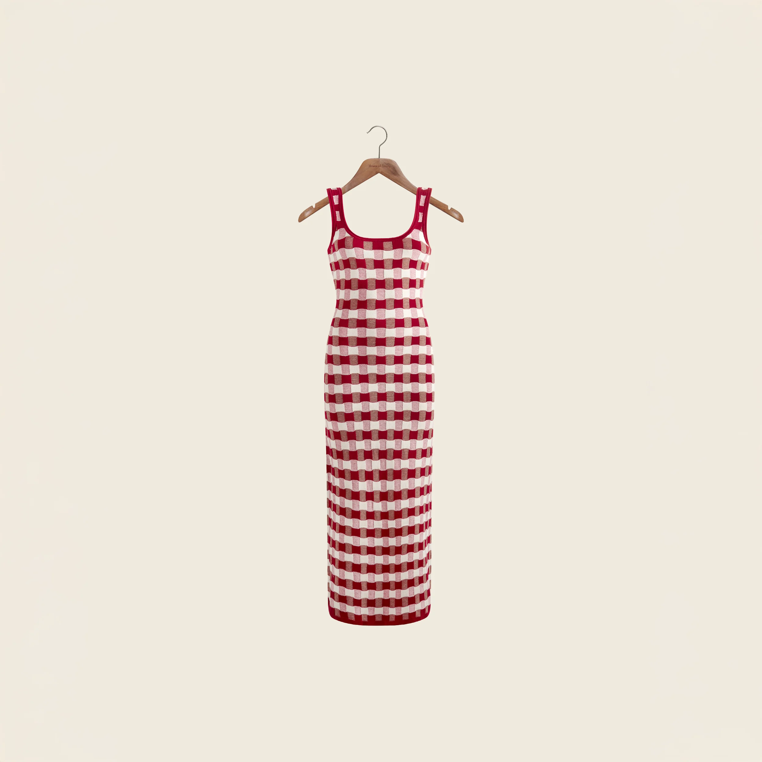Designed for a standard fit, we recommend selecting your normal size Jess is 5'9, is a size UK 8 and wears a UK 8 Theo is 5'7 and wears a size UK 10 Classic House of Sunny silhouette Form fitting Adjustable straps Scoop neckline Rolled hem finish Slit in the side Custom textured gingham print all-over FABRIC COMP 100% COTTON COLOUR RED CHECK