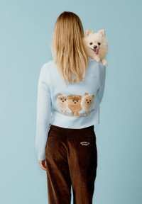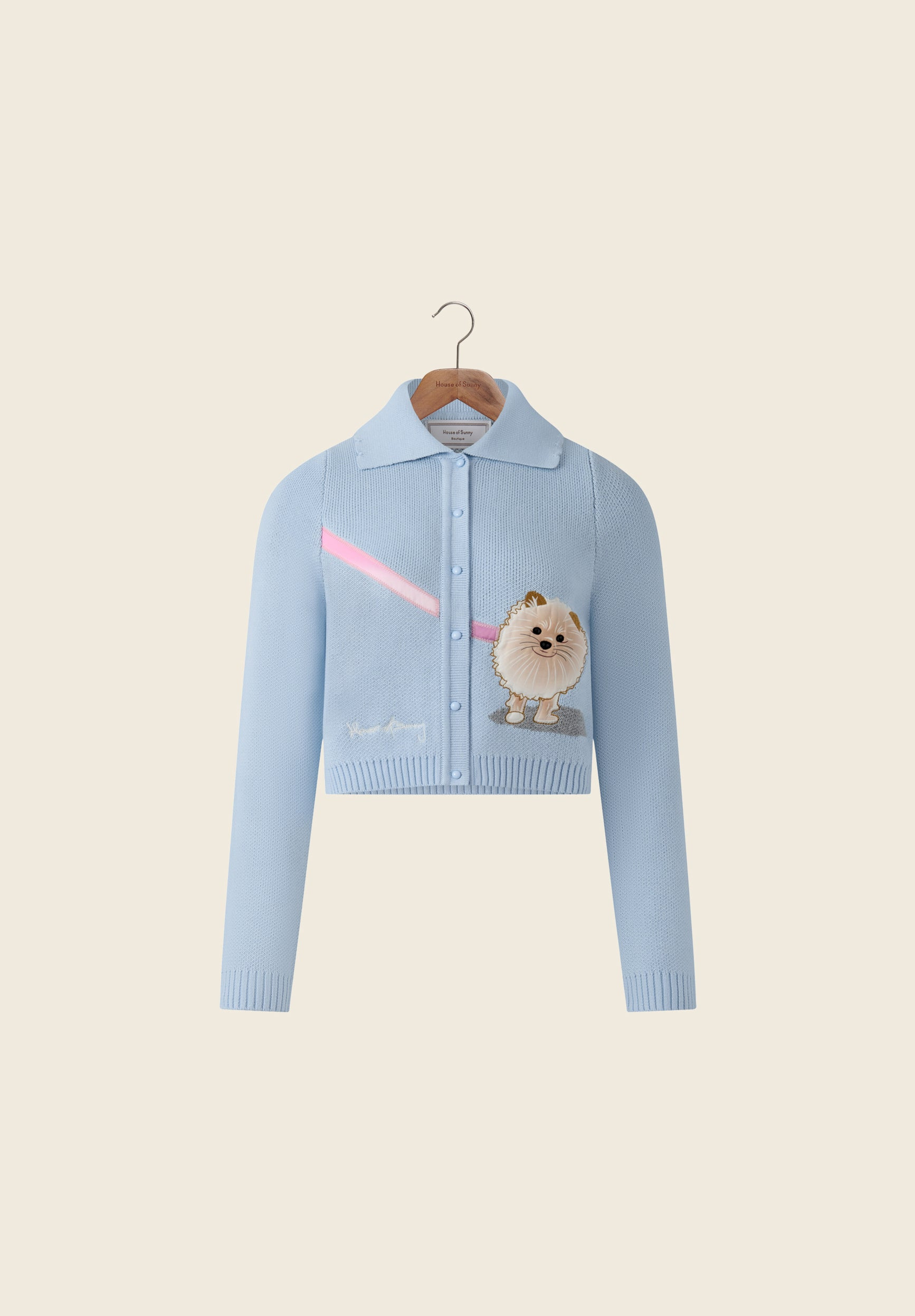 Designed for a standard fit, we recommend selecting your normal size Jess is 5'9, is a size UK 8 and wears a UK 10 for a relaxed fit Classic House of Sunny silhouette Applique Pomeranian design Embroidered HoS logo detailing Cropped fit Button fastening Embroidered top note details FABRIC COMP 50% COTTON, 50% ACRYLIC COLOUR SKY BLUE