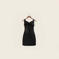 Designed for a standard fit, we recommend selecting your normal size The perfect Little Black Dress Square neckline Timeless dress Satin finish Features a bow on the back Button close at the back FABRIC COMP SHELL: 100% POLYESTER LINING: 100% COTTON