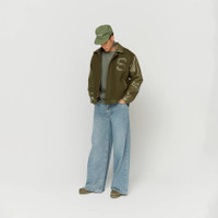 Designed for a standard fit, we recommend selecting your normal size Leandro is 6'1.5, is a Large and wears a size X-Large Boxy fit Varsity patch detail Zipper and popper front fastening Contrasting Vegan leather sleeves & collar FABRIC COMP SHELL 1: 100% POLYESTER SHELL 2: 100% POLYURETHANE RIBBING: 98% POLYESTER, 2% ELASTANE LINING: 100% POLYESTER