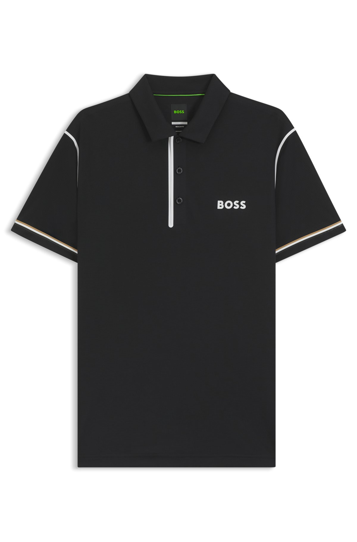 SIZE AND FIT The model wears a size M and is 6'2" tall with a, 36" chest, 31" waist and 38" hips. DETAILS Paddytech GOC - 50543352 Engineered in stretch ripstop with quick-dry performance, this moisture-managing BOSS Menswear polo shirt has a casual fit. Bonded contrast stripes. Regular fit Neckline: Polo collar Number of buttons: 3 Short sleeves Standard length QUALITY & CARE INSTRUCTIONS Do Not Tumble Dry Quality: 100% Polyester Iron Low Heat Do Not Bleach Machine Wash Cold Gentle Do Not Dry Clean