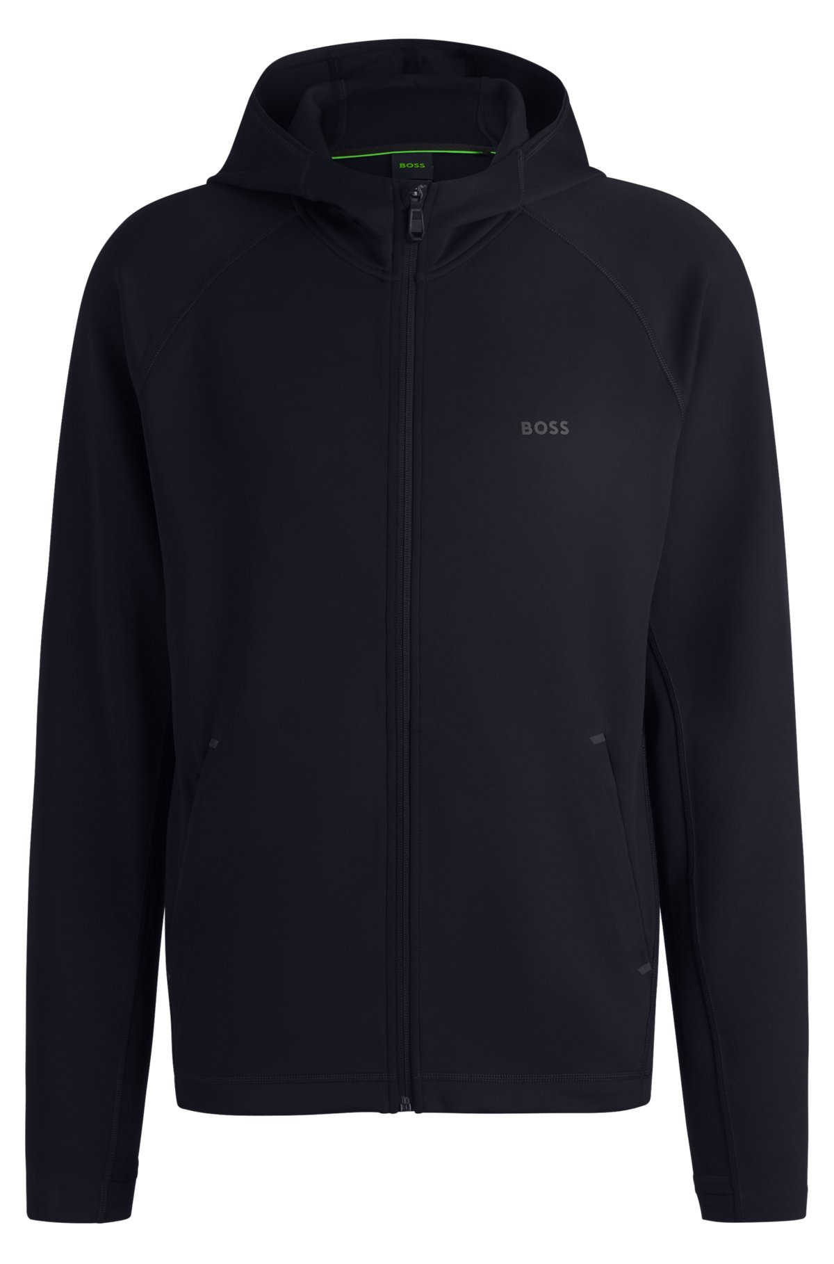 SIZE AND FIT The model wears a size M and is 6'2" tall with a, 38" chest, 31" waist and 37" hips. DETAILS Sicon Active - 50531224 Trimmed with decorative reflective details, this BOSS Menswear hoodie is a high-performance layer for workouts. Shaped hood. Secure zipped pocket. Easy regular fit. Regular fit Neckline: Hooded Fastening top: Zip closure Pockets top: Side-entry pockets Long sleeves Standard length QUALITY & CARE INSTRUCTIONS Iron Low Heat Machine Wash Cold Gentle Quality: 92% Polyester, 8% Elastane Do Not Bleach Do Not Tumble Dry Do Not Dry Clean