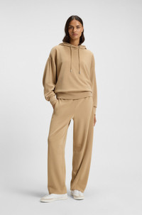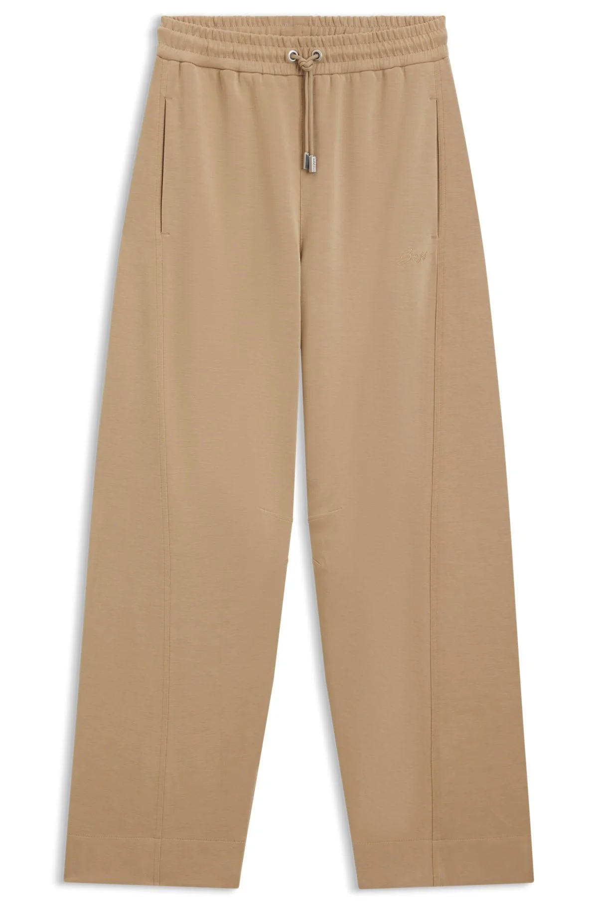 DETAILS In a modern balloon profile, these BOSS Womenswear trousers are a luxe addition to your casuals. Extra-soft stretch jersey. Embroidered handwritten logo. Drawstring waist. Relaxed fit Regular rise Drawstring Pockets bottom front: Side pockets C_Elijah - 50547800 QUALITY & CARE INSTRUCTIONS Do Not Tumble Dry Iron Low Heat Do Not Dry Clean Machine Wash Cold Gentle Do Not Bleach Quality: 52% Modal, 46% Polyester, 2% Elastane, pocketing: 100% Cotton