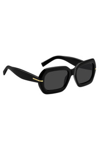 DETAILS BOSS 1732/G/S80754IR - 58138222 Contemporary sunglasses by BOSS Womenswear. Featuring gold-tone hinges for an elegant effect, this pair is crafted in black acetate. Front material: Acetate Temple material: Acetate Hinge type: Regular Lens: Full color Lens material: Polyester Size lens: 2.13 in (54 mm) (0 inches) Size bridge: 0.79 in (20 mm) (0 inch.) Temple Length: 5.7 in (145 mm) (0 inches)