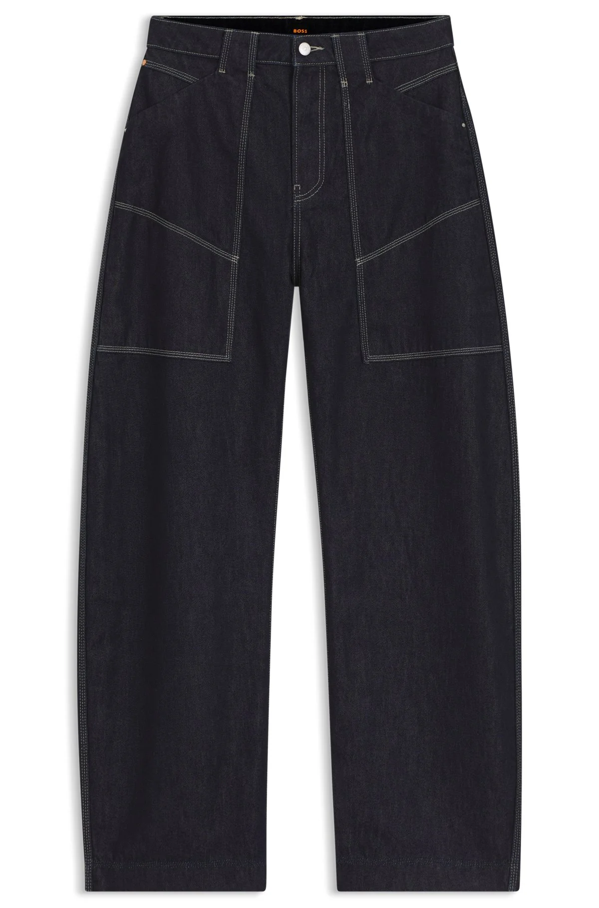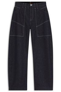 DETAILS In rigid denim with a clean rinse wash, these blue BOSS Womenswear jeans have a key balloon shape. Relaxed fit with a mid rise. Relaxed fit Mid rise Button and zip closure Pockets bottom front: Side slash pockets Pockets bottom back: Patch pocket Open length C_CARGO BALLOON 1.0 - 50552459 QUALITY & CARE INSTRUCTIONS Do Not Dry Clean Do Not Bleach Machine Wash Cold Gentle Do Not Tumble Dry Material: 60% Cotton, 40% Lyocell Iron Medium Heat