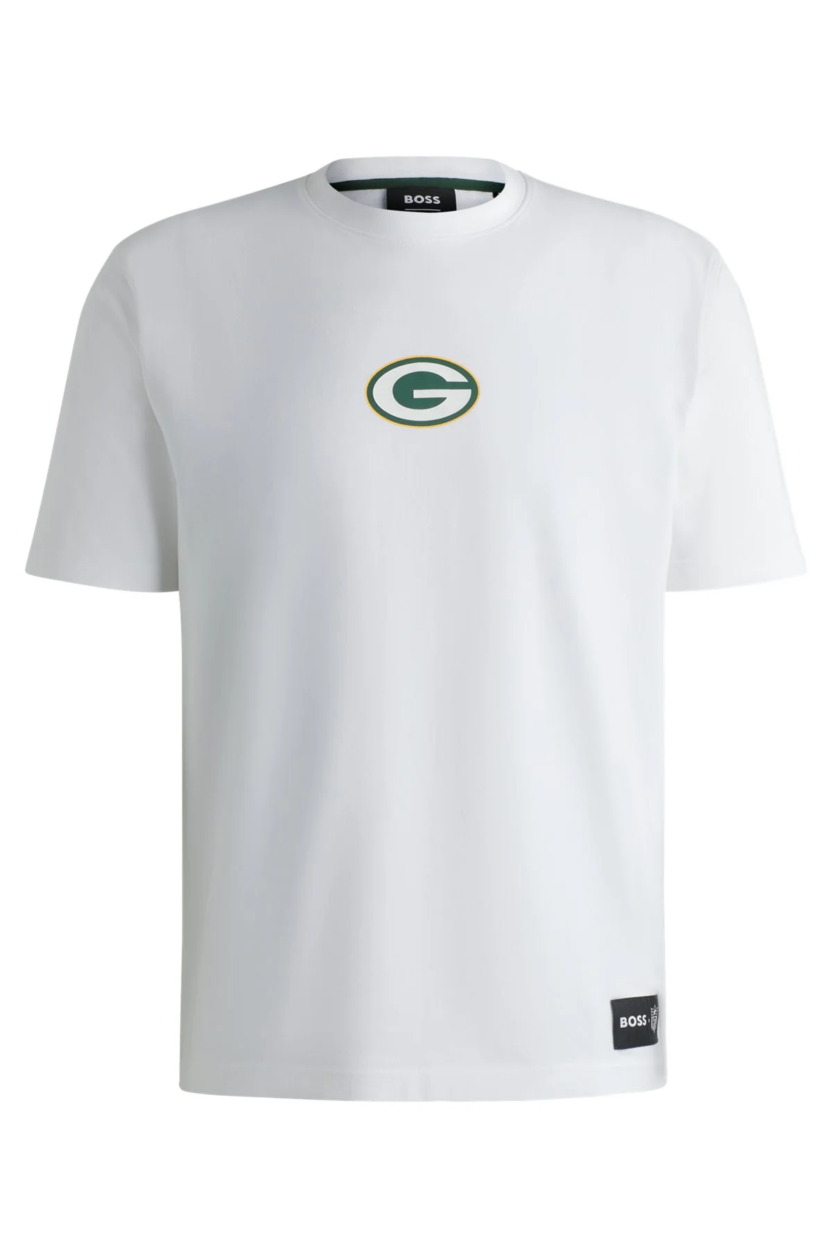 SIZE AND FIT The model wears a size M and is 6'2" tall with a, 36" chest, 31" waist and 38" hips. DETAILS A signature T-shirt crafted in stretch-cotton jersey by BOSS. This top is cut to a straight fit and detailed with special team branding. BOSS x NFL is a limited capsule that spotlights 22 popular NFL teams, celebrating the lifelong commitments that their players and fanbase make. Regular fit Neckline: Crew neck Short sleeves T_Brady_NFL - 50519534 QUALITY & CARE INSTRUCTIONS Do Not Tumble Dry Material: 94% Cotton, 6% Elastane, Ribbing: 90% Cotton, 10% Elastane Do Not Bleach Machine Wash Cold Gentle Iron Low Heat Do Not Dry Clean