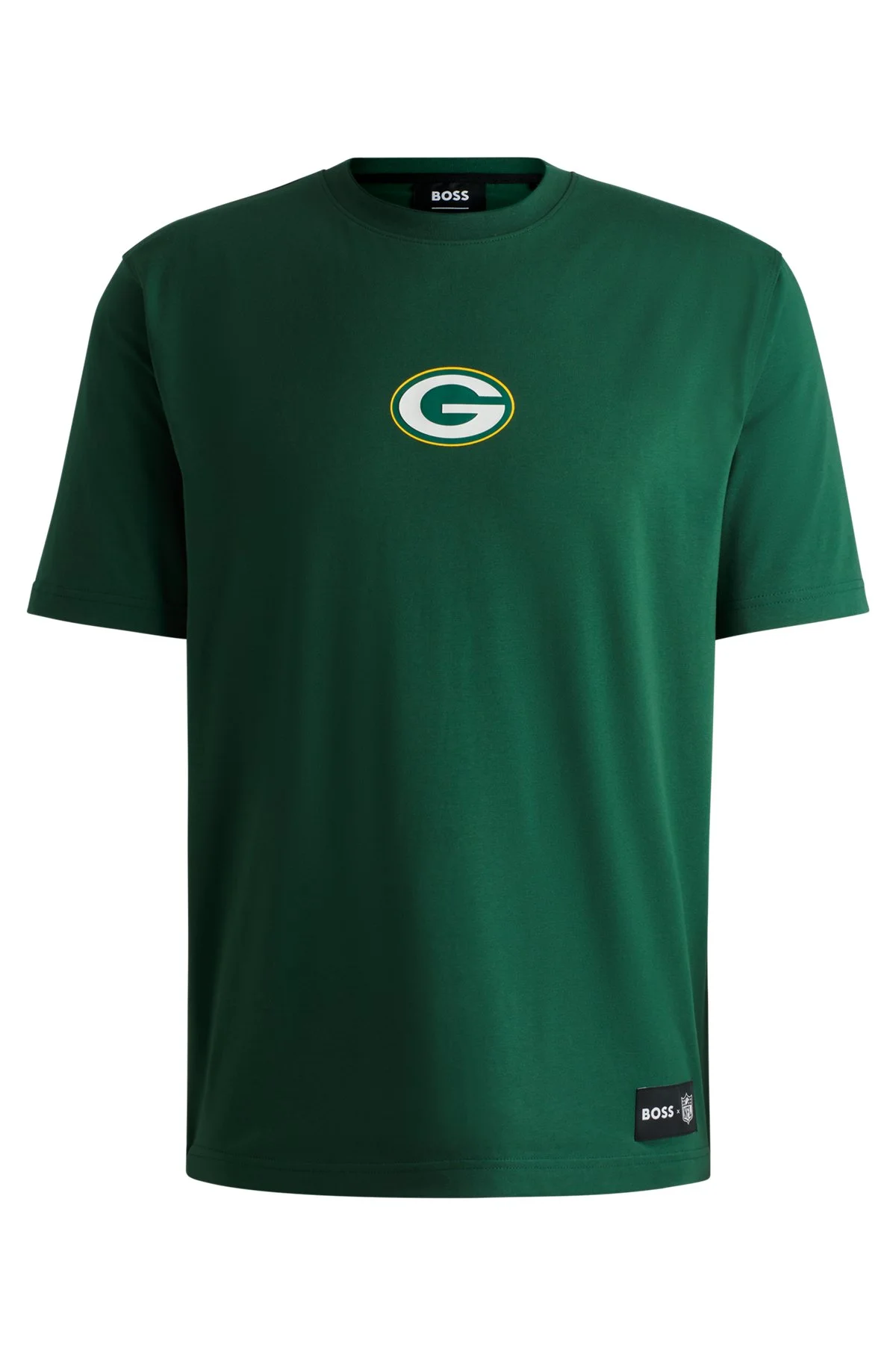 SIZE AND FIT The model wears a size M and is 6'2" tall with a, 36" chest, 31" waist and 38" hips. DETAILS A signature T-shirt crafted in stretch-cotton jersey by BOSS. This top is cut to a straight fit and detailed with special team branding. BOSS x NFL is a limited capsule that spotlights 22 popular NFL teams, celebrating the lifelong commitments that their players and fanbase make. Regular fit Neckline: Crew neck Short sleeves T_Brady_NFL - 50519534 QUALITY & CARE INSTRUCTIONS Do Not Tumble Dry Material: 94% Cotton, 6% Elastane, Ribbing: 90% Cotton, 10% Elastane Do Not Bleach Machine Wash Cold Gentle Iron Low Heat Do Not Dry Clean