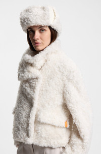 SIZE AND FIT The model wears a size 4 and is 5'10" tall with a, 31" chest, 23" waist and 35" hips. DETAILS Wrap up in this women's BOSS x Steiff coat, crafted in teddy plush fabric inspired by the cuddly teddy bears of Steiff. Relaxed, cropped fit. Special co-branding. The BOSS x Steiff collaboration merges two iconic German brands known for quality and craftsmanship. Relaxed fit Stand collar Fastening top: Concealed closure Number of buttons: 4 or more buttons Pockets top: Flap pockets Back vent Fully lined Short length Citeddy1 - 50550632 QUALITY & CARE INSTRUCTIONS Dry Clean Only Do Not Bleach Do Not Wash Material: 90% Polyester, 10% Wool, Lining: 55% Polyester, 45% Viscose Iron Low Heat Do Not Tumble Dry
