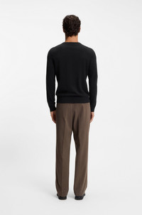 SIZE AND FIT The model wears a size M and is 6'1" tall with a, 37" chest, 29" waist and 35" hips. DETAILS For temperature regulation through all four seasons, this BOSS Menswear sweater is a luxe option. Knitted in 100% cashmere with an easy straight fit. Regular fit Neckline: Crew neck Long sleeves Standard length H-Emigliore - 50546690 QUALITY & CARE INSTRUCTIONS Do Not Bleach Do Not Tumble Dry Iron Medium Heat Material: 100% Cashmere Reduced Dry Clean Cold, gentle machine wash; reduced spin speed.