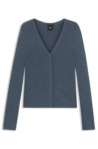 DETAILS Resistant to pilling, this exceptionally soft BOSS Womenswear cardigan is a contemporary layer. Knitted in antibacterial and breathable merino wool with a clean concealed placket. Slim fit Fit back length: 57 cm (22 inches) Friva - 50544904 QUALITY & CARE INSTRUCTIONS Hand Wash Only Quality: 100% Virgin wool Iron Low Heat Do Not Tumble Dry Reduced Dry Clean Do Not Bleach