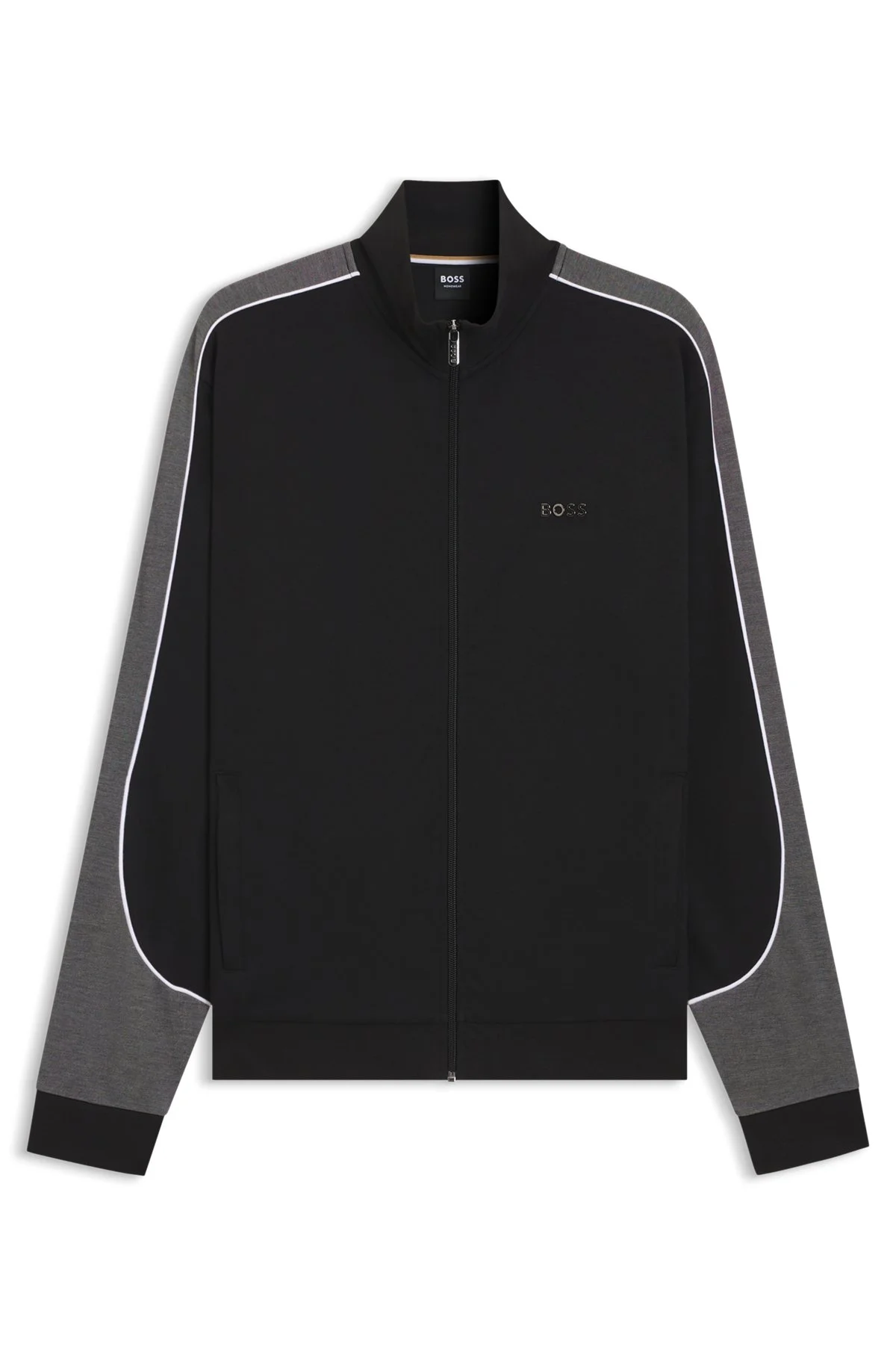 SIZE AND FIT The model wears a size M and is 6'0" tall with a, 36" chest, 31" waist and 35" hips. DETAILS With its contrast details and metallic branding, this BOSS Menswear jacket offers distinctive layering. Cut to a straight fit. Regular fit Neckline: Zip neck Pockets top: Welt pockets Tracksuit Jacket - 50554793 QUALITY & CARE INSTRUCTIONS Machine Wash Warm Do Not Dry Clean Material: 70% Cotton, 30% Polyester Do Not Bleach Do Not Tumble Dry Iron Low Heat