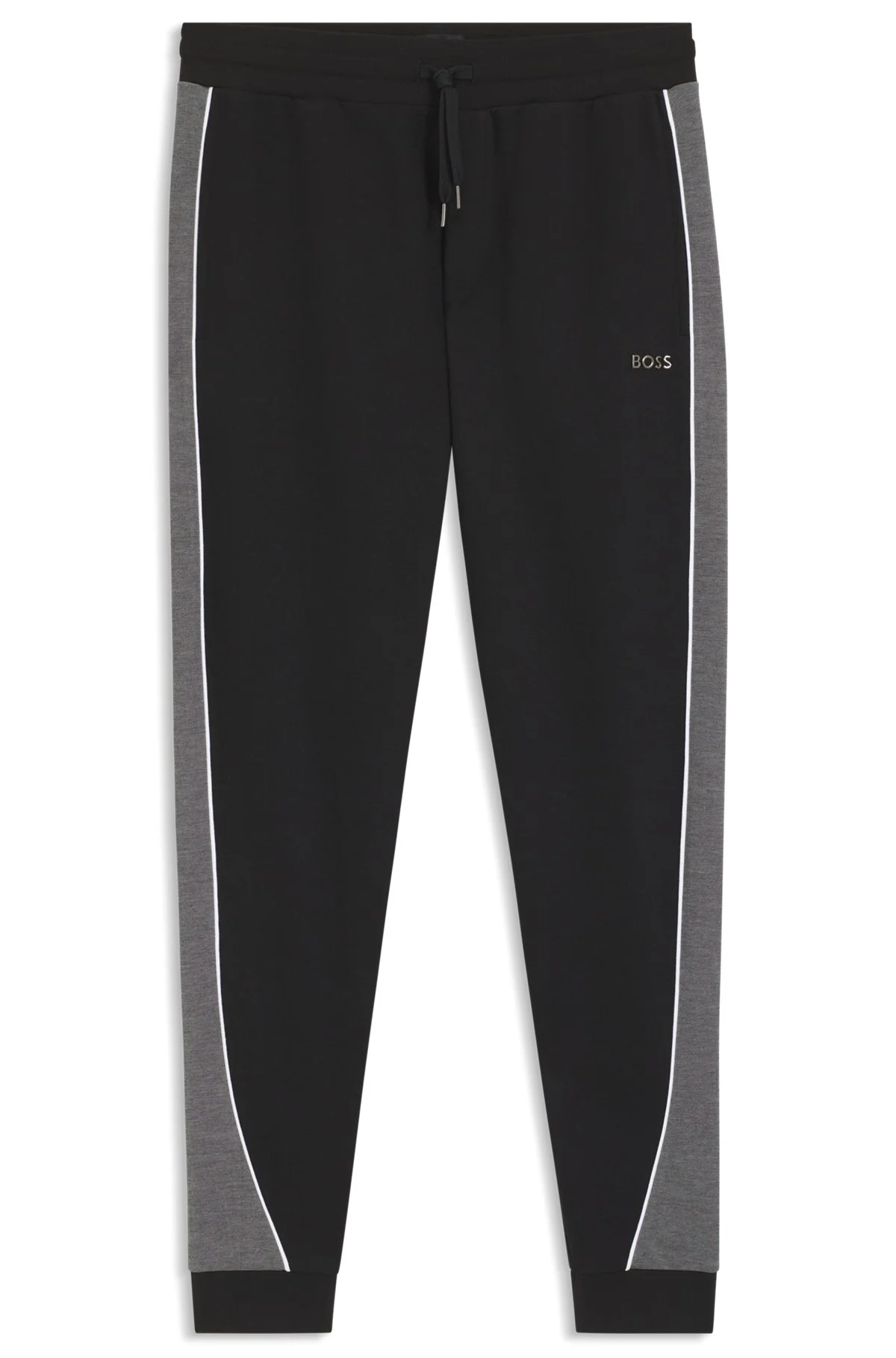 SIZE AND FIT The model wears a size M and is 6'0" tall with a, 36" chest, 31" waist and 35" hips. DETAILS Create distinctive off-duty looks with the metallic branding and contrast piping of these BOSS Menswear tracksuit bottoms. Breathable, soft pique with inserts. Covered waistband Drawstring Pockets bottom front: Zip pockets Tracksuit Pants - 50554794 QUALITY & CARE INSTRUCTIONS Machine Wash Warm Do Not Dry Clean Material: 70% Cotton, 30% Polyester Do Not Bleach Do Not Tumble Dry Iron Low Heat