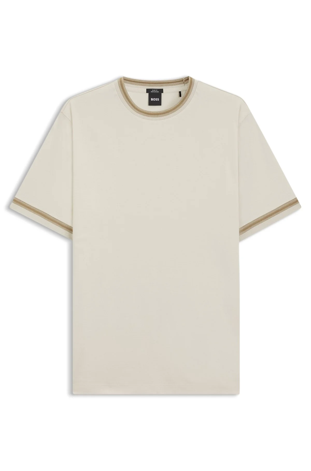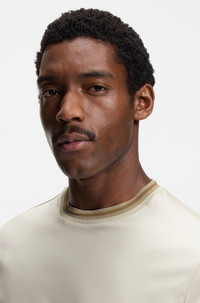 SIZE AND FIT The model wears a size M and is 6'1" tall with a, 36" chest, 29" waist and 37" hips. DETAILS Cut to a slim fit in extra-soft mercerized cotton, this BOSS Menswear T-shirt adds interest to casual outfits. Contrast tipping and structured details. Slim fit Neckline: Crew neck Short sleeves Standard length H-Tessler 202 - 50554536 QUALITY & CARE INSTRUCTIONS Reduced Dry Clean Do Not Tumble Dry Iron Low Heat Machine Wash Cold Gentle Material: 100% Cotton Do Not Bleach