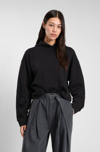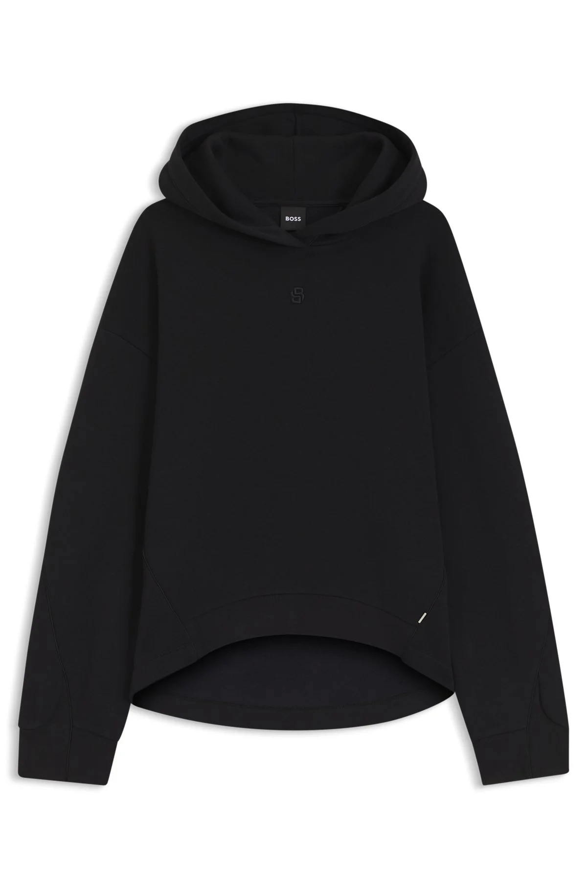 SIZE AND FIT The model wears a size S and is 5'9" tall with a, 29" chest, 23" waist and 35" hips. DETAILS Layer up in style and comfort with the soft cotton blend of this relaxed BOSS Womenswear hoodie. Lustrous piping. Double B monogram detail. loose fit Neckline: Hooded Long sleeves Standard length Essaga - 50550339 QUALITY & CARE INSTRUCTIONS Quality: 55% Cotton, 45% Lyocell, Ribbing: 66% Lyocell, 32% Cotton, 2% Elastane Iron Low Heat Do Not Tumble Dry Cold, gentle machine wash; reduced spin speed. Do Not Bleach Do Not Dry Clean