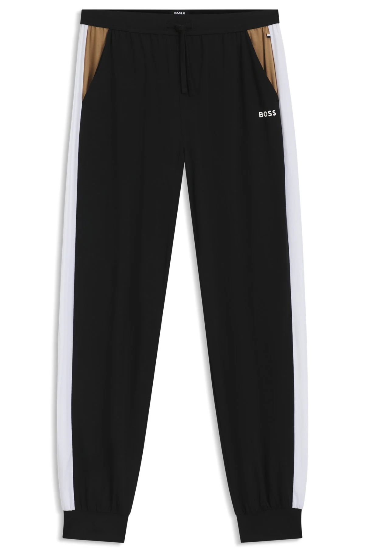 SIZE AND FIT The model wears a size M and is 6'1" tall with a, 38" chest, 31" waist and 37" hips. DETAILS In jersey with stretch, these cuffed BOSS Menswear pajama bottoms are a refined overnight choice. Contrast panels in signature colors. Covered waistband Drawstring Pockets bottom front: Side pockets Balance Pants - 50550492 QUALITY & CARE INSTRUCTIONS Material: 55% Cotton, 37% Modal, 8% Elastane Do Not Bleach Do Not Dry Clean Machine Wash Cold Iron Low Heat Tumble Dry Low Heat