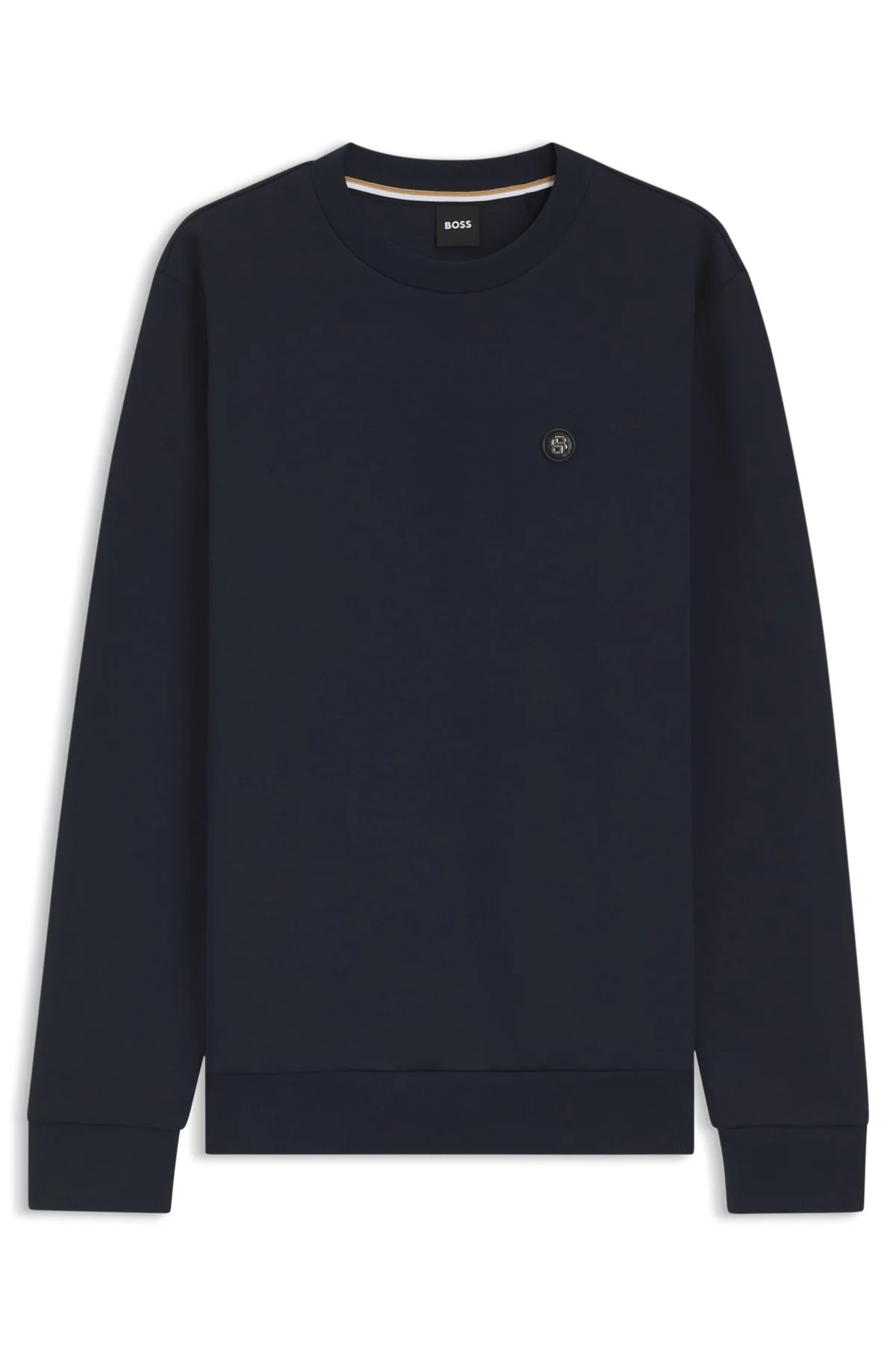 DETAILS Featuring a distinctive Double B monogram, this BOSS Menswear sweatshirt is an instant casual classic. Cotton-rich blend. Easy regular fit. Regular fit Neckline: Crew neck Long sleeves Standard length C-Sharpe 01 - 50555830 QUALITY & CARE INSTRUCTIONS Iron Low Heat Do Not Bleach Material: 86% Cotton, 14% Polyester Machine Wash Cold Gentle Do Not Tumble Dry Do Not Dry Clean