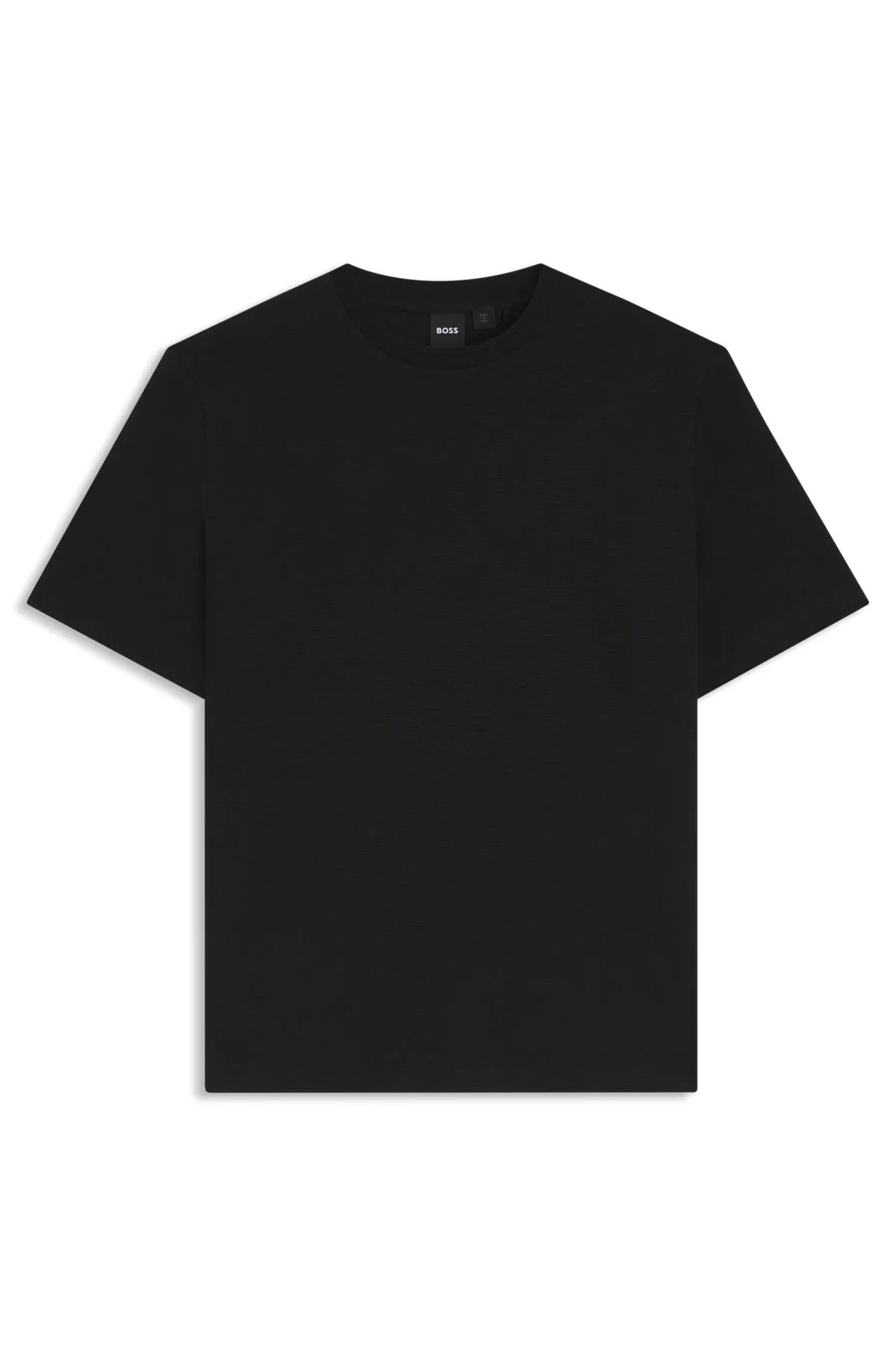 DETAILS A crew-neck T-shirt by BOSS Menswear, featuring a bubble structure created with a jacquard technique. Styled with a regular fit, this short-sleeved piece is crafted in a cotton blend and simply detailed with a ribbed-cotton collar and a logo flag at the side seam. The mouline yarn gives this T-shirt a distinctive effect. Regular fit Neckline: Crew neck Short sleeves BT-Tiburt 240 - 50559635 QUALITY & CARE INSTRUCTIONS Machine Wash Cold Gentle Do Not Bleach Do Not Tumble Dry Material: 75% Cotton, 25% Polyester Do Not Dry Clean Iron Low Heat