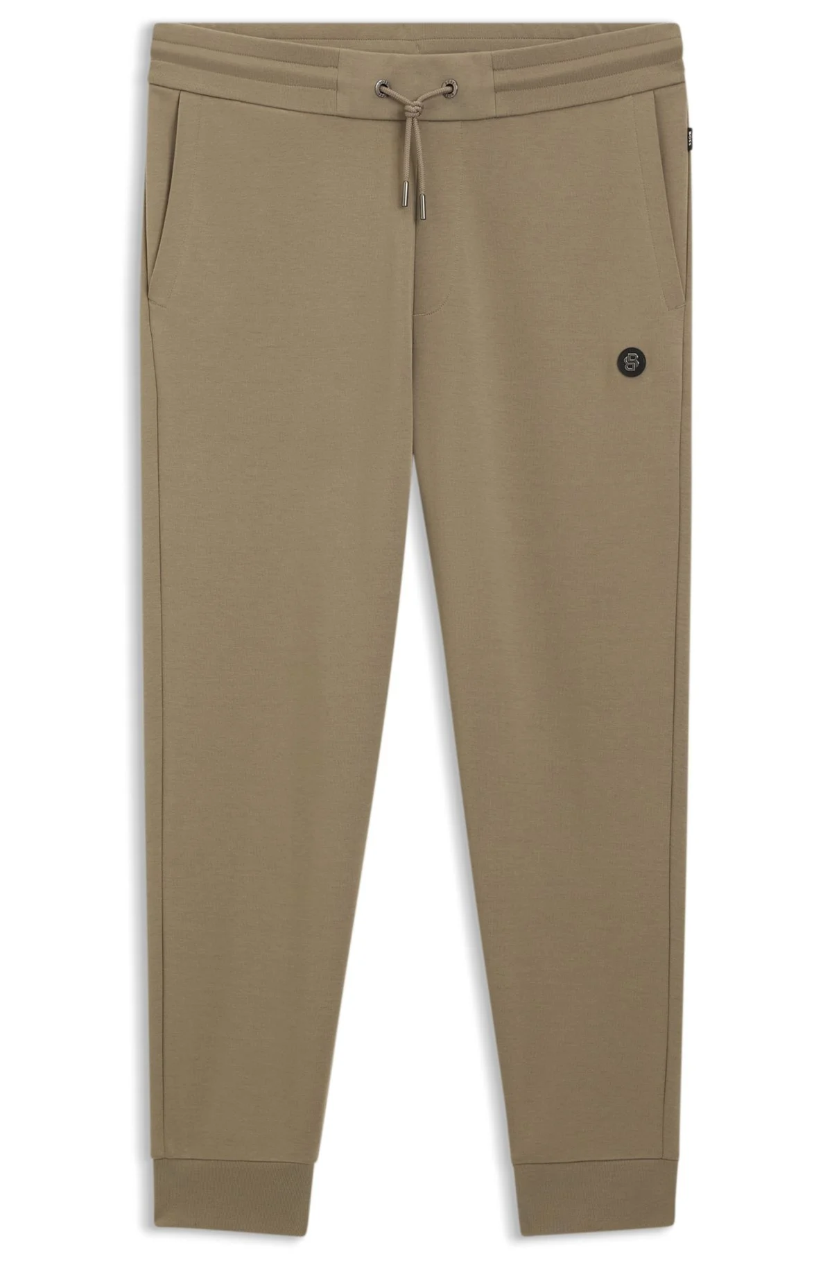 SIZE AND FIT The model wears a size M and is 6'2" tall with a, 36" chest, 31" waist and 38" hips. DETAILS Super-soft tracksuit bottoms by BOSS Menswear. Cut to a regular fit with cuffed hems, this interlock-fabric pair features a metallic Double B monogram. Regular fit Regular rise Drawstring Cuffed leg C-Locsin 01 - 50520322 QUALITY & CARE INSTRUCTIONS Do Not Dry Clean Do Not Tumble Dry Do Not Bleach Iron Low Heat Material: 86% Cotton, 14% Polyester Machine Wash Cold Gentle