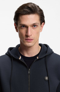 SIZE AND FIT The model wears a size M and is 6'2" tall with a, 35" chest, 29" waist and 35" hips. DETAILS Trimmed with a distinctive Double B monogram, this BOSS Menswear hoodie is crafted in a soft, cotton-rich blend. Straight fit. Double-ended zipper. Regular fit Neckline: Hooded Fastening top: Zip closure Long sleeves Standard length C-Spence 01 - 50555851 QUALITY & CARE INSTRUCTIONS Machine Wash Cold Gentle Do Not Bleach Do Not Tumble Dry Do Not Dry Clean Material: 86% Cotton, 14% Polyester Iron Low Heat