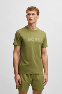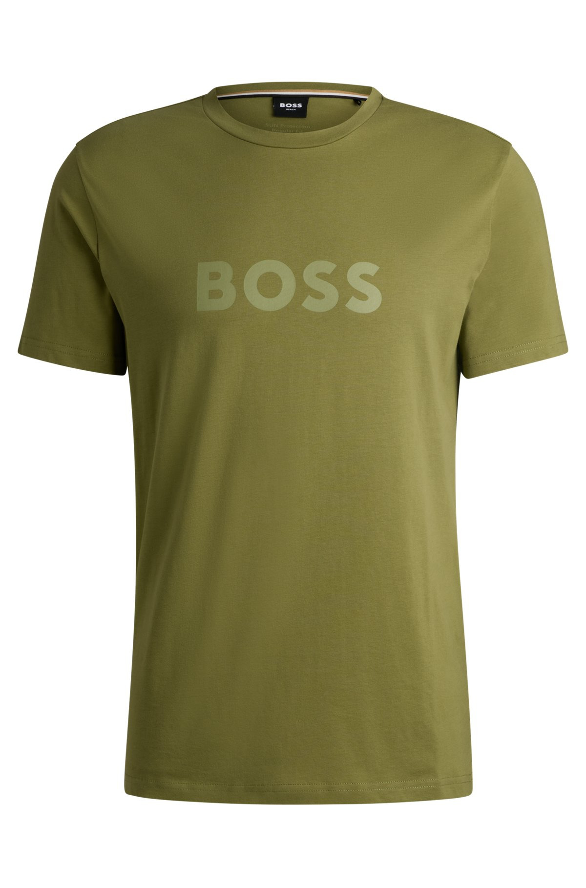 SIZE AND FIT The model wears a size M and is 6'2" tall with a, 36" chest, 31" waist and 38" hips. DETAILS T-Shirt RN - 50491706 A short-sleeved jersey T-shirt ideal for beachwear, designed by BOSS Menswear in a regular fit with a contrast printed logo at the chest. Regular fit Neckline: Crew neck QUALITY & CARE INSTRUCTIONS Iron Low Heat Machine Wash Cold Quality: 100% Cotton Do Not Bleach Do Not Tumble Dry Do Not Dry Clean