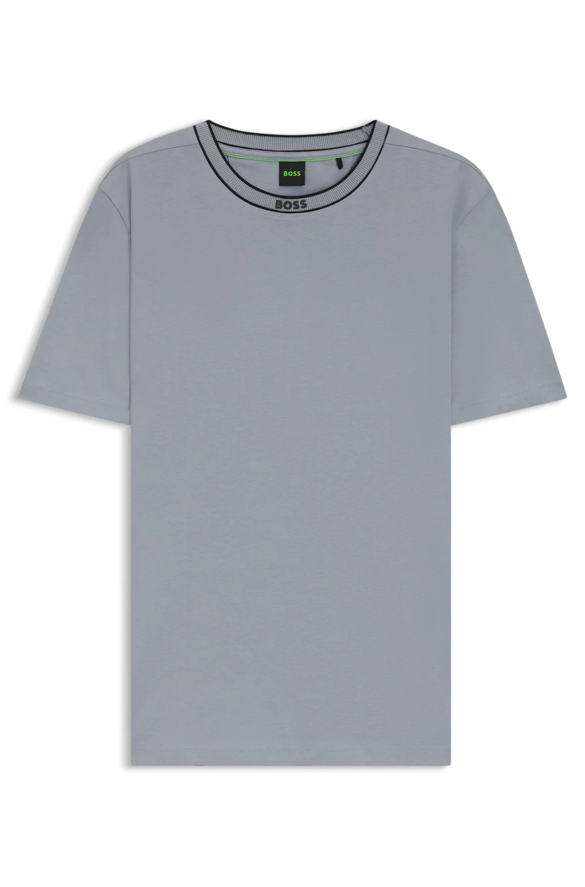 SIZE AND FIT The model wears a size L and is 6'0" tall with a, 38" chest, 29" waist and 38" hips. DETAILS Tee 5 - 50552029 Featuring stripes and branding on the collar, this BOSS Menswear T-shirt is a modern casual option. Straight fit in soft, breathable cotton. Regular fit Neckline: Crew neck Short sleeves Standard length QUALITY & CARE INSTRUCTIONS Quality: 100% Cotton Do Not Tumble Dry Do Not Bleach Machine Wash Cold Gentle Iron Low Heat Do Not Dry Clean