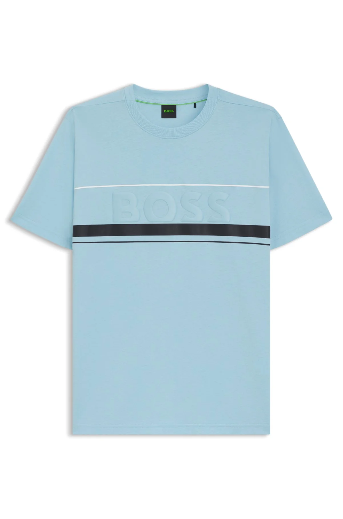 SIZE AND FIT The model wears a size L and is 6'0" tall with a, 38" chest, 29" waist and 38" hips. DETAILS Tee Iconic Zone - 50550113 In breathable cotton jersey, this BOSS Menswear T-shirt is ideal for everyday casual wear. Sporty stripes and a large BOSS logo. Regular fit Neckline: Crew neck Short sleeves Standard length QUALITY & CARE INSTRUCTIONS Do Not Tumble Dry Machine Wash Cold Gentle Quality: 100% Cotton Iron Low Heat Do Not Bleach Do Not Dry Clean