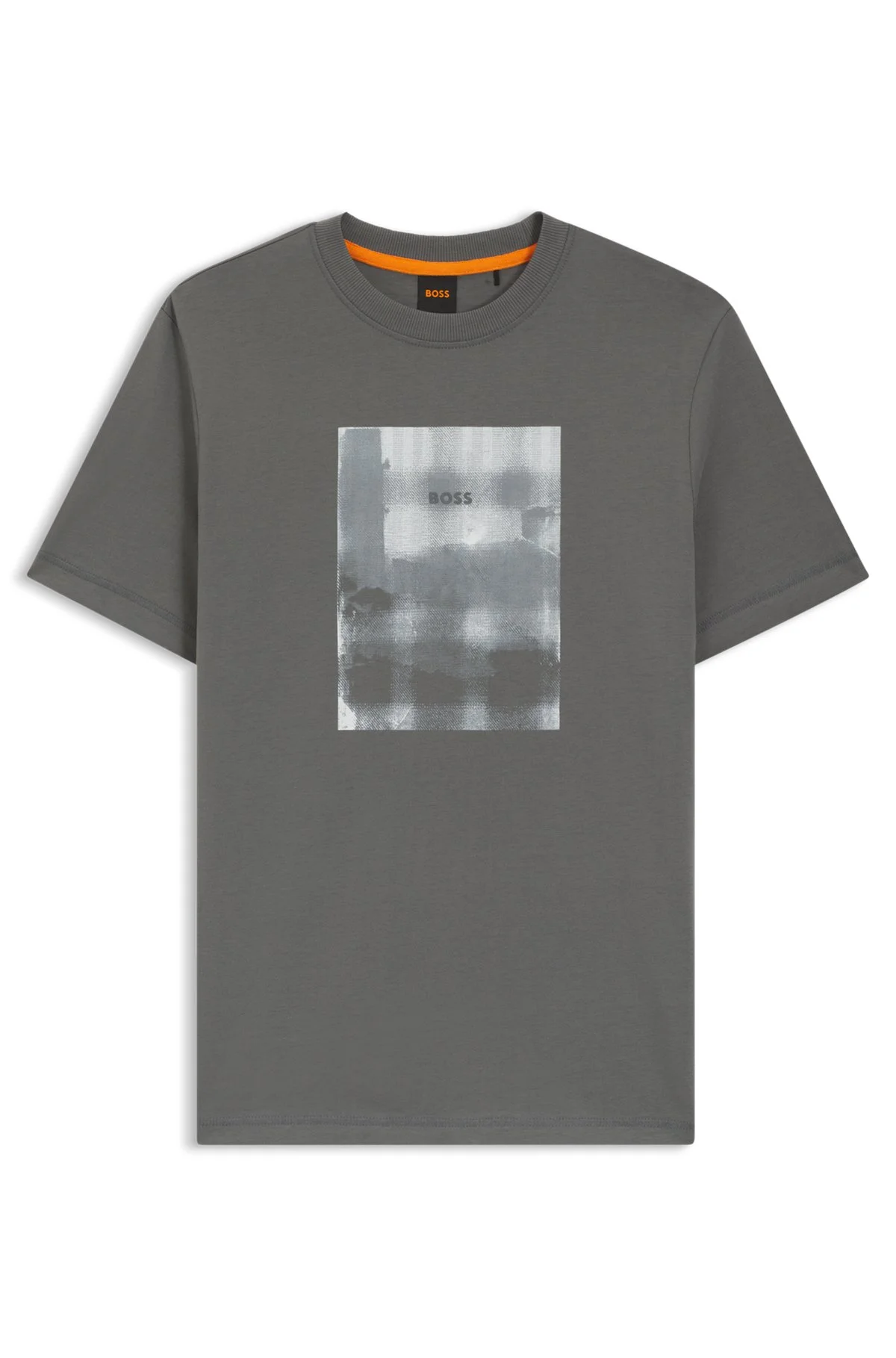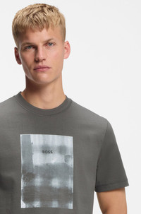 DETAILS Printed with a creative graphic, this BOSS Menswear T-shirt will add impact to casual looks. Easy straight fit. Made in soft cotton jersey. Regular fit Neckline: Crew neck Short sleeves Te_brokenice - 50554640 QUALITY & CARE INSTRUCTIONS Do Not Dry Clean Do Not Tumble Dry Do Not Bleach Iron Low Heat Machine Wash Cold Gentle Material: 100% Cotton